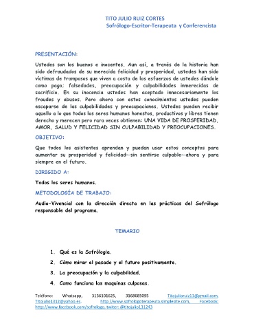 Titojulio1312@yahoo.es. http://www.sofrologoterapeuta.simplesite.com, Facebook: