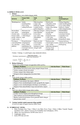 Indikator Penilaian                                      Ada dan Benar   Tidak Benar