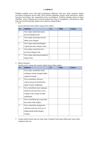 Laporan hasil percobaan dinilai dengan daftar periksa.