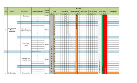 NO TEMA SUBTEMA Pembelajaran Ke- JULI AGUSTUS SEPTEMBER OKTOBER NOVEMBER DESEMBER Keterangan