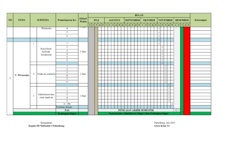 NO TEMA SUBTEMA Pembelajaran Ke- JULI AGUSTUS SEPTEMBER OKTOBER NOVEMBER DESEMBER Keterangan