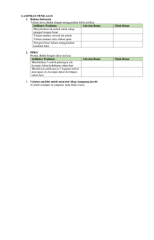Indikator Penilaian Ada dan Benar Tidak Benar