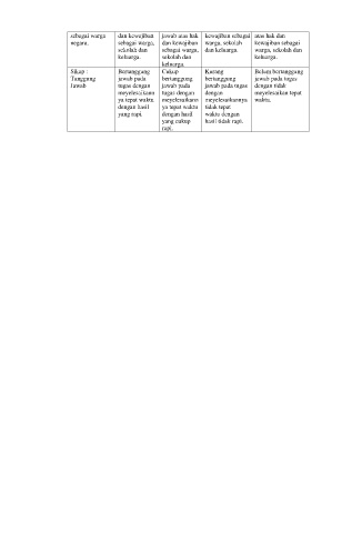 Sikap : Bertanggung Cukup Kurang Belum bertanggung
