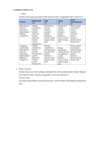 Jawaban siswa tentang mencintai produk Indonesia dinilai menggunakan rubrik (penilaian 2)