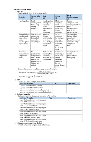 Saat berdiskusi, siswa dinilai dengan rubrik.