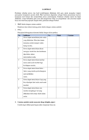 3. Catatan anekdot untuk mencatat sikap (disiplin, jujur)