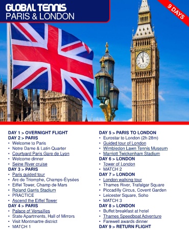 DAY 1 > OVERNIGHT FLIGHT                                   DAY 5 > PARIS TO LONDON