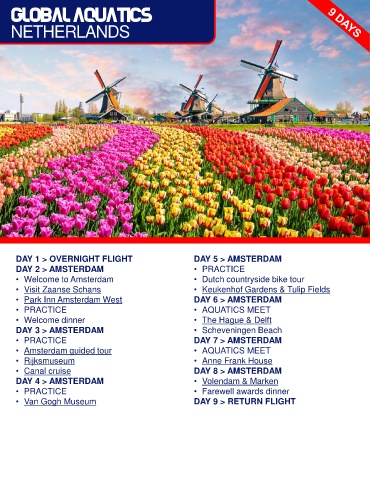 DAY 1 > OVERNIGHT FLIGHT DAY 5 > AMSTERDAM
