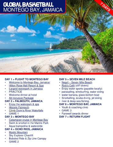 DAY 1 > FLIGHT TO MONTEGO BAY DAY 5 > SEVEN MILE BEACH