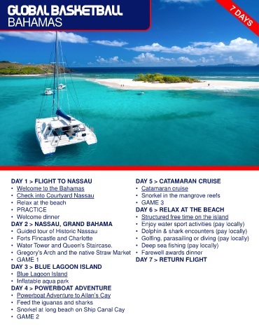 DAY 1 > FLIGHT TO NASSAU DAY 5 > CATAMARAN CRUISE