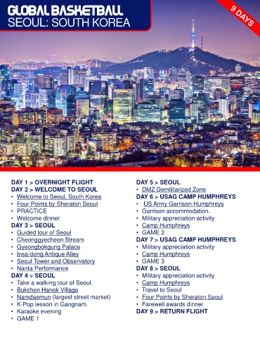 DAY 1 > OVERNIGHT FLIGHT DAY 5 > SEOUL
