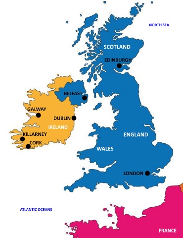 ENGLAND NORTH SEA NETHERLANDS SCOTLAND EDINBURGH SPAIN BELFAST GALWAY DUBLIN FRANCE IRELAND KILLARNEY ENGLAND SWITZERLAND CORK WALES LONDON ITALY ATLANTIC OCEANS SPAIN FRANCE