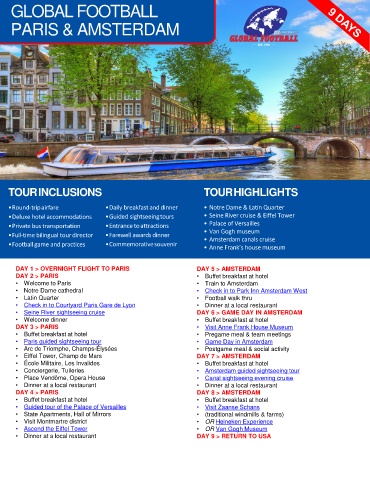 • Paris guided sightseeing tour • Game Day in Amsterdam