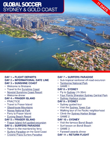 • Travel to the Sunshine Coast DAY 8 > SYDNEY