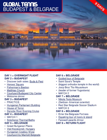 DAY 5 > BELGRADE                                           DAY 9 > RETURN FLIGHT