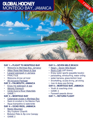 DAY 1 > FLIGHT TO MONTEGO BAY DAY 5 > SEVEN MILE BEACH