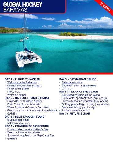 DAY 1 > FLIGHT TO NASSAU DAY 5 > CATAMARAN CRUISE