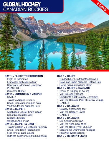 DAY 1 > FLIGHT TO EDMONTON DAY 5 > BANFF