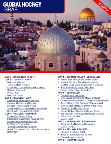 DAY 1 > OVERNIGHT FLIGHT DAY 5 > JORDAN VALLEY | JERUSALEM