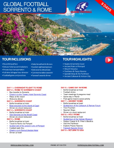 DAY 1 > OVERNIGHT FLIGHT TO ROME DAY 6 > GAME DAY IN ROME