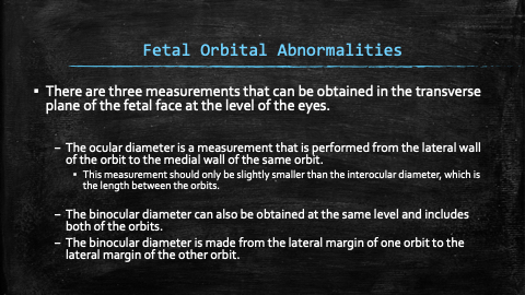 ▪ There are three measurements that can be obtained in the transverse plane of the fetal face at the level of the eyes.