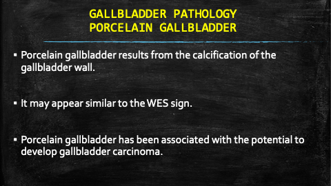 ▪ Porcelain gallbladder results from the calcification of the gallbladder wall.