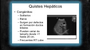 Quistes Hepáticos • Congénitos: – Solitarios – Raros – Surgen por defectos en formación ductos biliares – Pueden variar de tamaño desde <1 hasta 20 cm. – Frecuentes RT Lobe