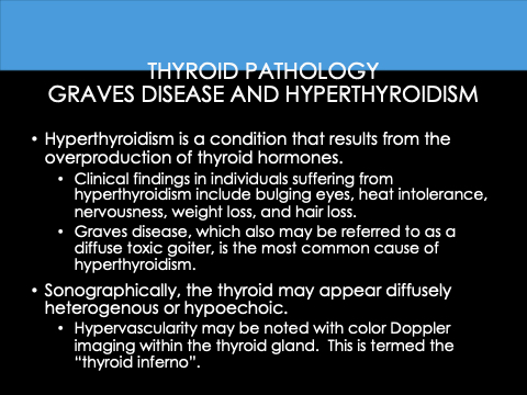 • Sonographically, the thyroid may appear diffusely heterogenous or hypoechoic.