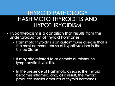 • InthepresenceofHashimotodisease,thethyroid becomes inflamed, and, as a result, the thyroid produces smaller amounts of thyroid hormones.
