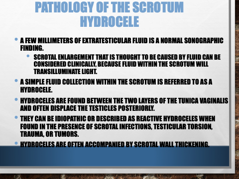 • A FEW MILLIMETERS OF EXTRATESTICULAR FLUID IS A NORMAL SONOGRAPHIC FINDING.