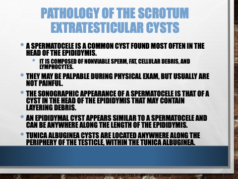 PATHOLOGY OF THE SCROTUM EXTRATESTICULAR CYSTS