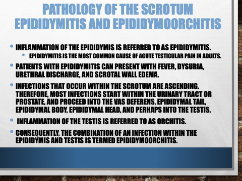 PATHOLOGY OF THE SCROTUM EPIDIDYMITIS AND EPIDIDYMOORCHITIS
