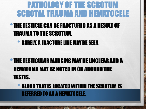 • BLOOD THAT IS LOCATED WITHIN THE SCROTUM IS REFERRED TO AS A HEMATOCELE.