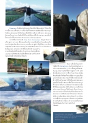 ต้องเตรียมตัวให้พร้อมท้ังความฟิตร่างกายและเครื่อง แต่งกายท่ีเหมาะสม รองเท้าที่ใช้ควรเป็นรองเท้า สาหรับปีนเขาโดยเฉพาะที่กันลื่นและช่วยผ่อนแรง และต้องไปแต่เช้า เพราะเราต้องใช้เวลาประมาณ 6-8 ชั่วโมงในการเดินทาง แต่ขอบอกว่าความสวยงามนั้น มใี หช้ น่ื ชมตลอดเสน้ ทางทเี่ ดนิ เปน็ ความงามทยี่ งิ่ ใหญ่ อลังการแบบที่เราแทบไม่รู้ตัวเลยว่าเดินมาไกลมาก เพราะเราจะเห็นว่ามีเด็กตัวเล็กตัวน้อยเดินแซงเราไป ตลอดเวลา รวมไปถงึ นอ้ งหมาทเ่ี จา้ ของพามาเดนิ เลน่ ! ดงั นน้ั เราจะมแี รงฮดึ เอง หลงั จากปนี เขาไป 3-4 ชว่ั โมง เราก็จะขึ้นถึง Kjeragbolten ท่ีโด่งดัง หากใครที่ชอบ ความตื่นเต้นหวาดเสียว ก็สามารถเดินข้ึนไปบน กอ้ นหนิ นน้ั และเกบ็ ภาพความประทบั ใจ