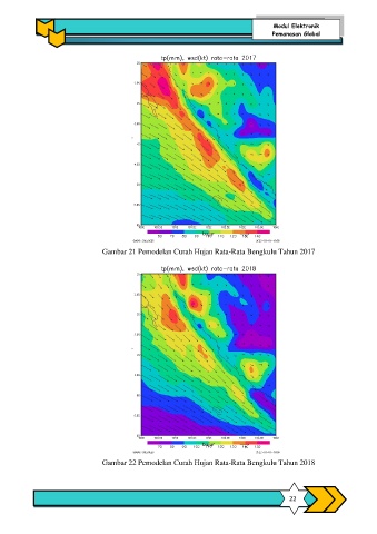Modul Elektronik Pemanasan Global Gambar 21 Pemodelan Curah Hujan Rata-Rata Bengkulu Tahun 2017 Gambar 22 Pemodelan Curah Hujan Rata-Rata Bengkulu Tahun 2018 22