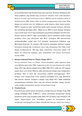 perubahan iklim yang dikeluarkan oleh IPCC. Sedangkan SBI berkonsentrasi