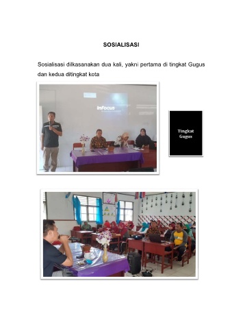 SOSIALISASI Sosialisasi dilkasanakan dua kali, yakni pertama di tingkat Gugus dan kedua ditingkat kota Tingkat Gugus