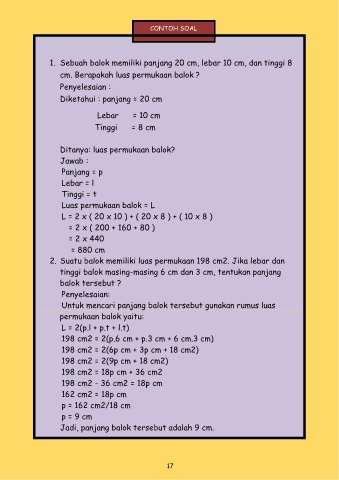 1. Sebuah balok memiliki panjang 20 cm, lebar 10 cm, dan tinggi 8