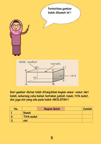 balok, sekarang coba kalian tentukan jumlah rusuk, titik sudut,