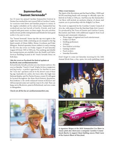 the regular schedules set by school days, Summerfest has The event is supported by the Caroline County Council of