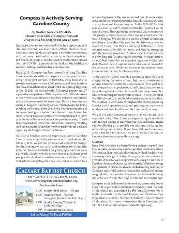 or loss. In 2021, we worked with 174 hospice patients and 27 those throughout Caroline, Kent, and Queen Anne’s counties