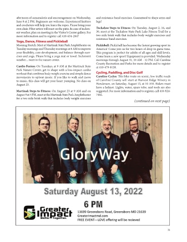 own chair. Fiber artists will meet on the patio. In case of inclem- Tuckahoe Steps to Fitness: On Tuesday, August 2, 16, and