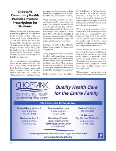 enrolled in Choptank Health’s School- and 980 or 14.3% of Talbot County’s