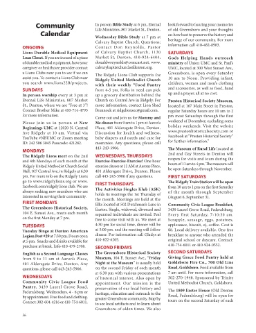 go to www.ridgelylions.org or www. FIRST THURSDAYS The Ridgely Train Station will be open