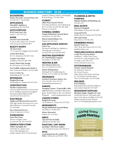 BUSINESS DIRECTORY $2.50 each line, each month. 3 month min.