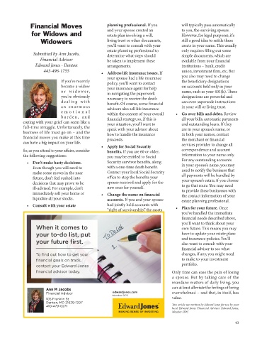 • Don’t make hasty decisions. Security survivor benefi ts, along For any outstanding accounts