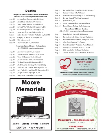 Sept. 7 Julius Thomas “Tommy” Bartz, Sr., 62, Marydel Aug. 1 Dorothy Lois Hartwick, 95, Denton