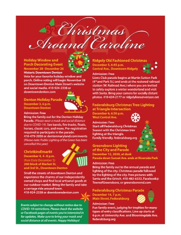due to COVID-19). See bands, fire trucks, floats, Start off Federalsburg Christmas