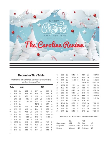 December Tide Table 17 3:58 Lo 9:46 Hi 4:01 Lo 10:29 Hi