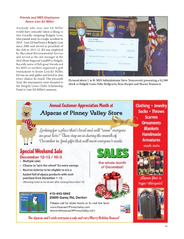 check to Ridgely Lions Mike Redgraves, Ross Harper and Sharon Brannock